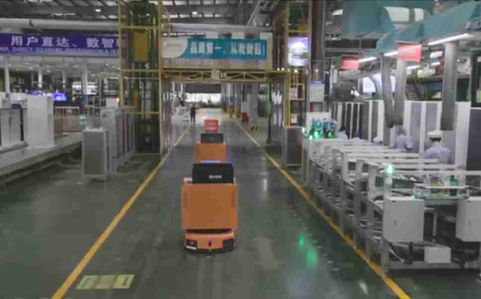 为车载冰箱物流配送打造的智能解决方案,,,包含产中物流通过潜伏举升AMR搬运至线边,,,,产后成品物流智能仓储,,,,流程包含产中物流智能齐套入库,,,线边安灯叫料AMR智能配送至线边,,,,成品入库、、、、出库,,,,通过无人堆高车机器人,,智能仓储管理替代人工作业管理,,,实现更高存储、、、、更高效率、、、更具柔性化的解决方案。。